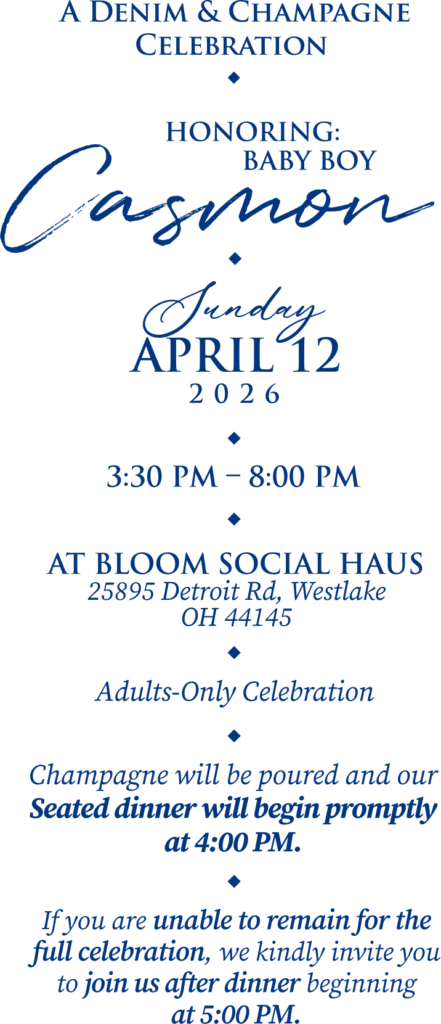 An afternoon of denim, champagne, and sweet anticipation as we celebrate the little one on the way. Dress in your favorite denim and raise a glass with us